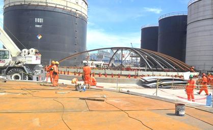 Actividad: INGENIERÍA, SUMINISTRO, FABRICACIÓN Y MONTAJE DE TANQUES: 80 MB (2 TANQUES), 60 MB (6 TANQUES), 55 MB (3 TANQUES) EN API VER, TOTAL DE TONELDAS: 2948